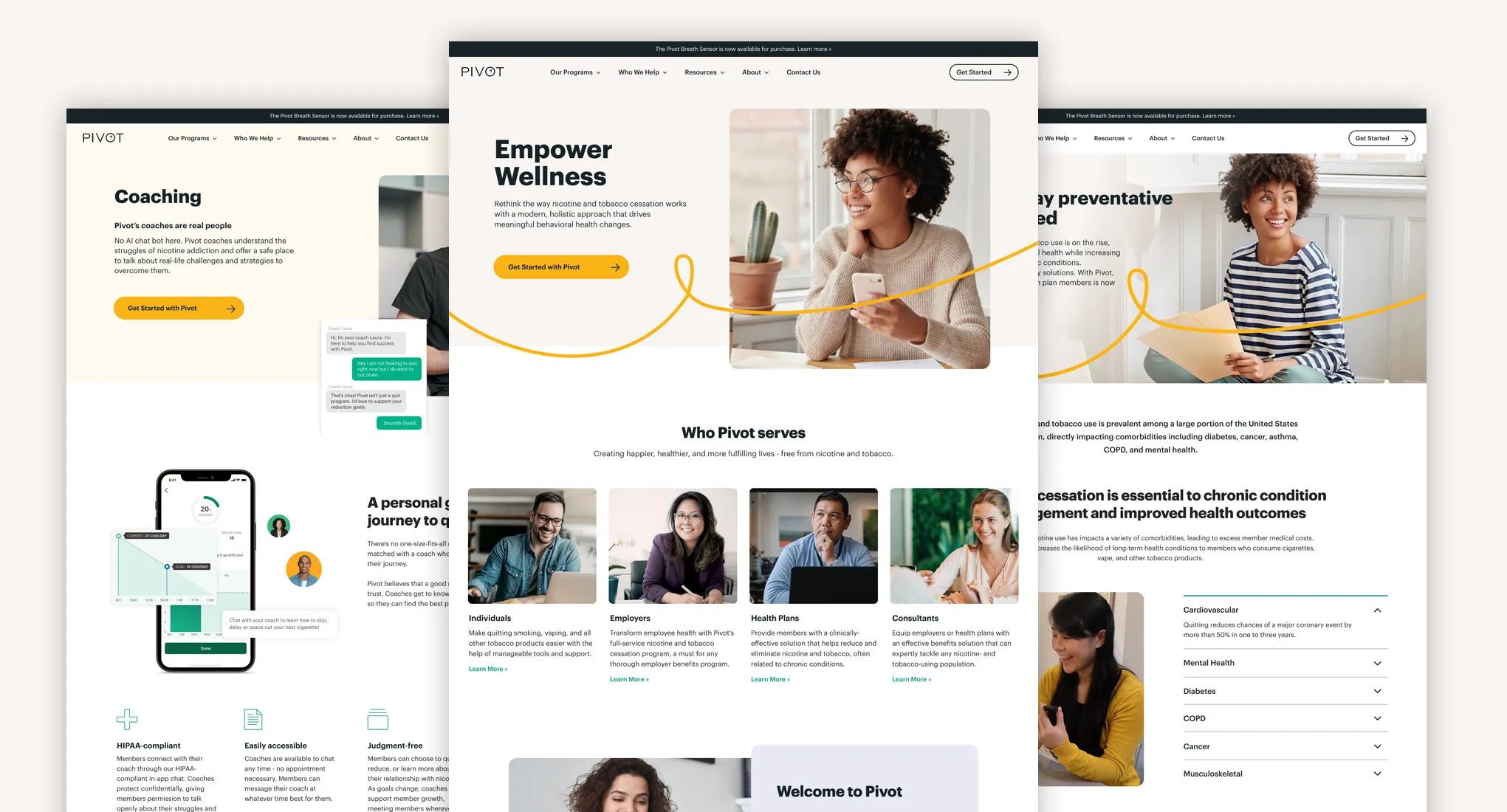 As a technology-enabled health platform focused on smoking cessation and long-term well-being, Pivot needed a brand strategy and website experience that could balance science with empathy—while driving measurable conversion.